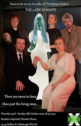 The second play of the Edith Nesbit's Ghost Stories tour is The Lady in White. Playing for 4 nights (23/10 - 26/10) at the Edinburgh Horror Festival, this eerie tale injects a wonderful dose of humour into the Hallowe'en season!
